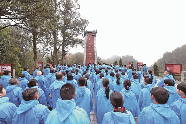 庄严的国歌声在山谷中回响,与烈士们为纾国难慷慨赴死的壮烈情怀隔空共鸣;少先队员们用清亮童音唱响“我们是共产主义接班人”,唱出后人对先辈最好的告慰。